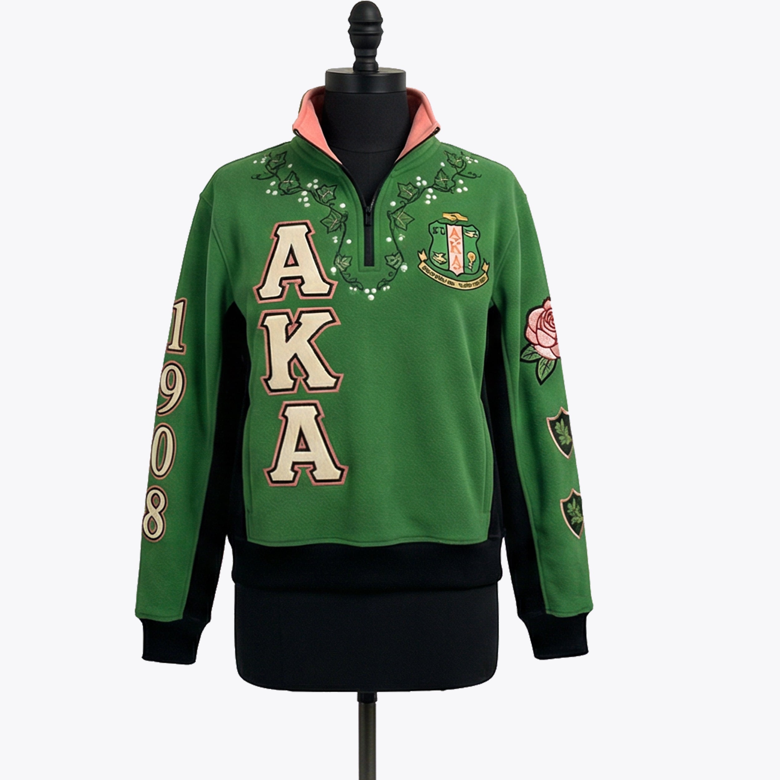 AKA Sorority Quarter-Zip Pullover Green Black Ivy Pearl Rose 1908